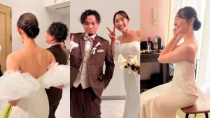 ヘアメイクリハーサルでイメージを相談後に肩につかない長さにカットして迎えた結婚式当日