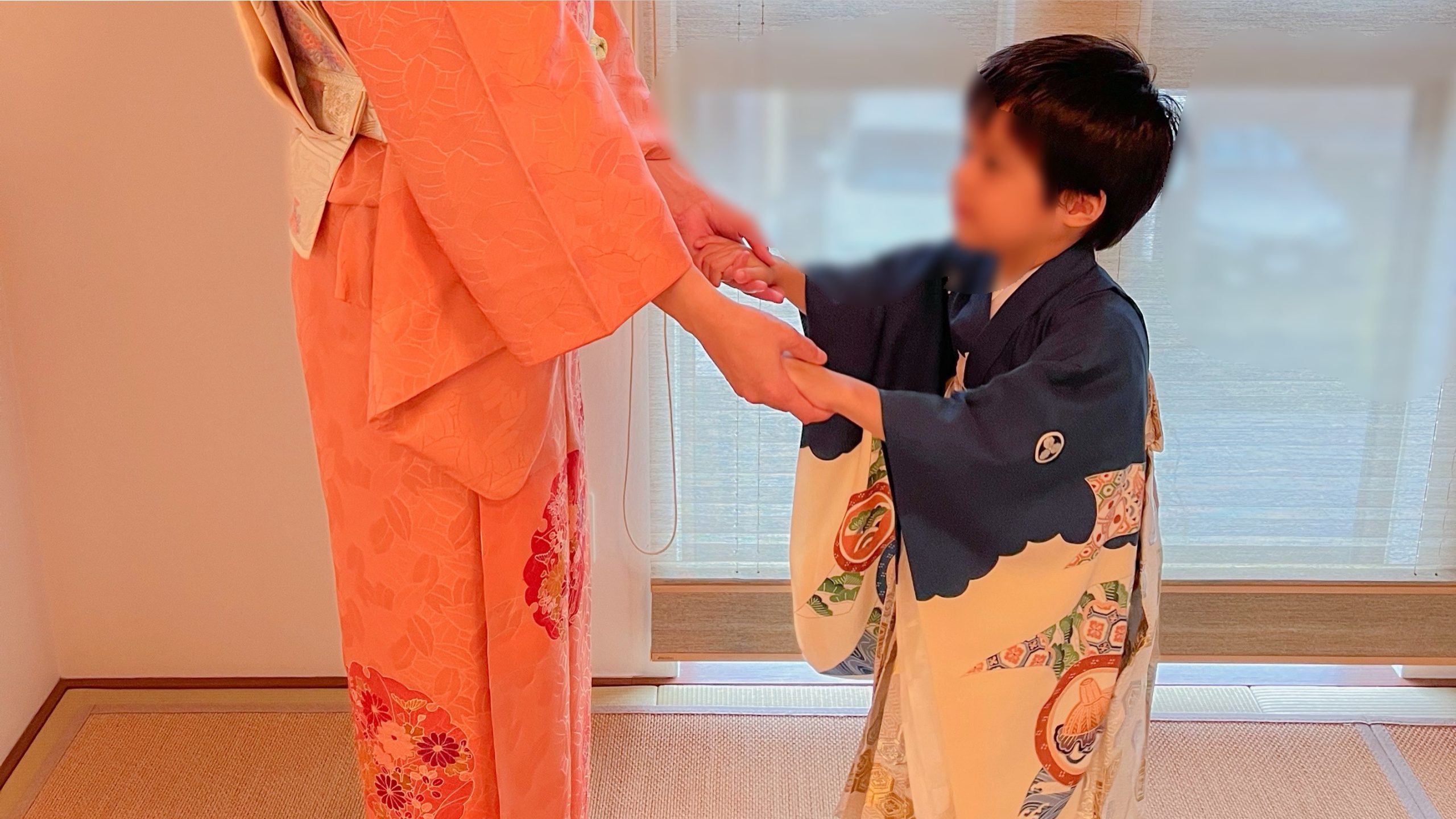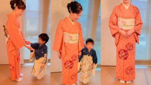 ママの着付けとヘアセット、5歳男の子の袴着付けとヘアセットのご依頼をいただき、ご自宅に出張させていただきました